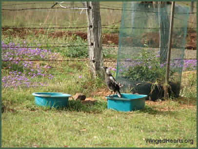 Over the past few months, our birds' feathers have all generally improved - Vicky's, for example, have grown nicely where she had a bald spot for about six months. But our new adult magpie, Wendy, has surprised us. Slowly but surely, her off-white neck feathers have got whiter - whiter and whiter. Are we going to have to change Wendy's name to William?